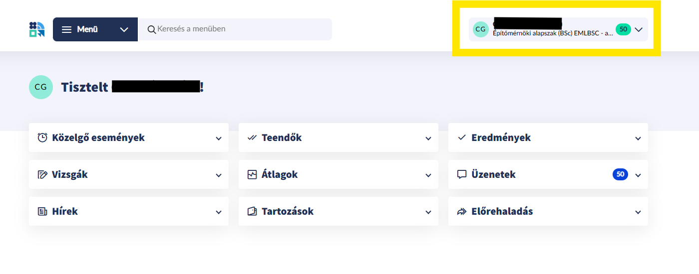 Lépjen be a Neptun-rendszerbe (https://neptunweb.uni-nke.hu/hallgato/login.aspx), válassza ki az aktuális képzését, ahol kreditet szeretne elismertetni.