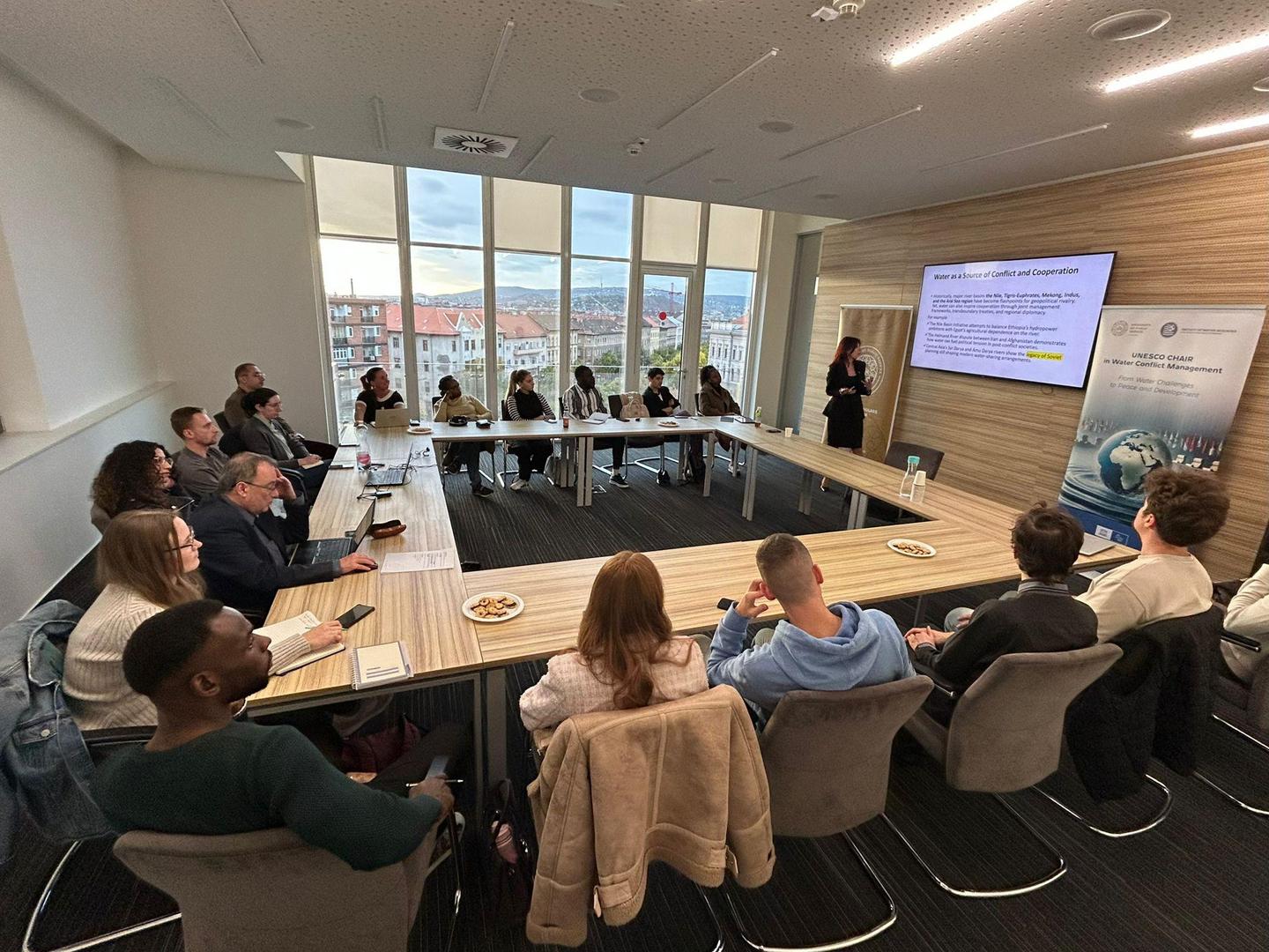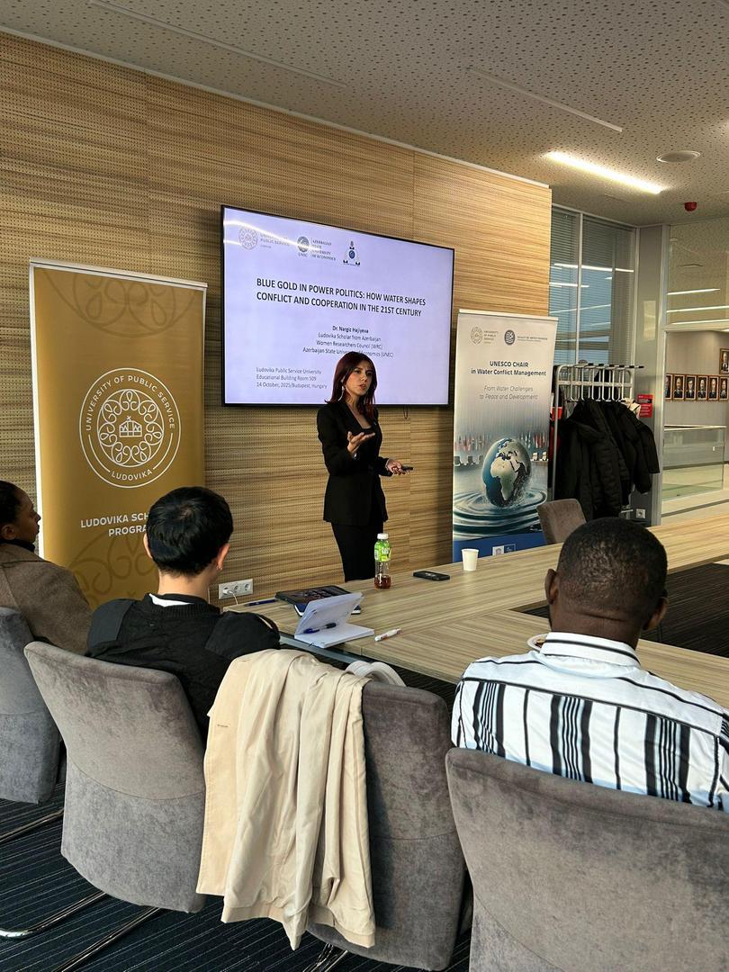 Az azerbajdzsáni kutató bemutatta, miként válhat a víz egyszerre konfliktusok és együttműködés forrásává a nemzetközi politikában – példaként említve a Nílus, a Tigris–Eufrátesz és a Mekong folyók térségét. Kitért Azerbajdzsán zöld átmeneti stratégiáira és a Kaukázus régió vízügyi kihívásaira is, rávilágítva, hogyan fonódik össze a vízgazdálkodás, az energiafüggetlenség és a diplomácia.