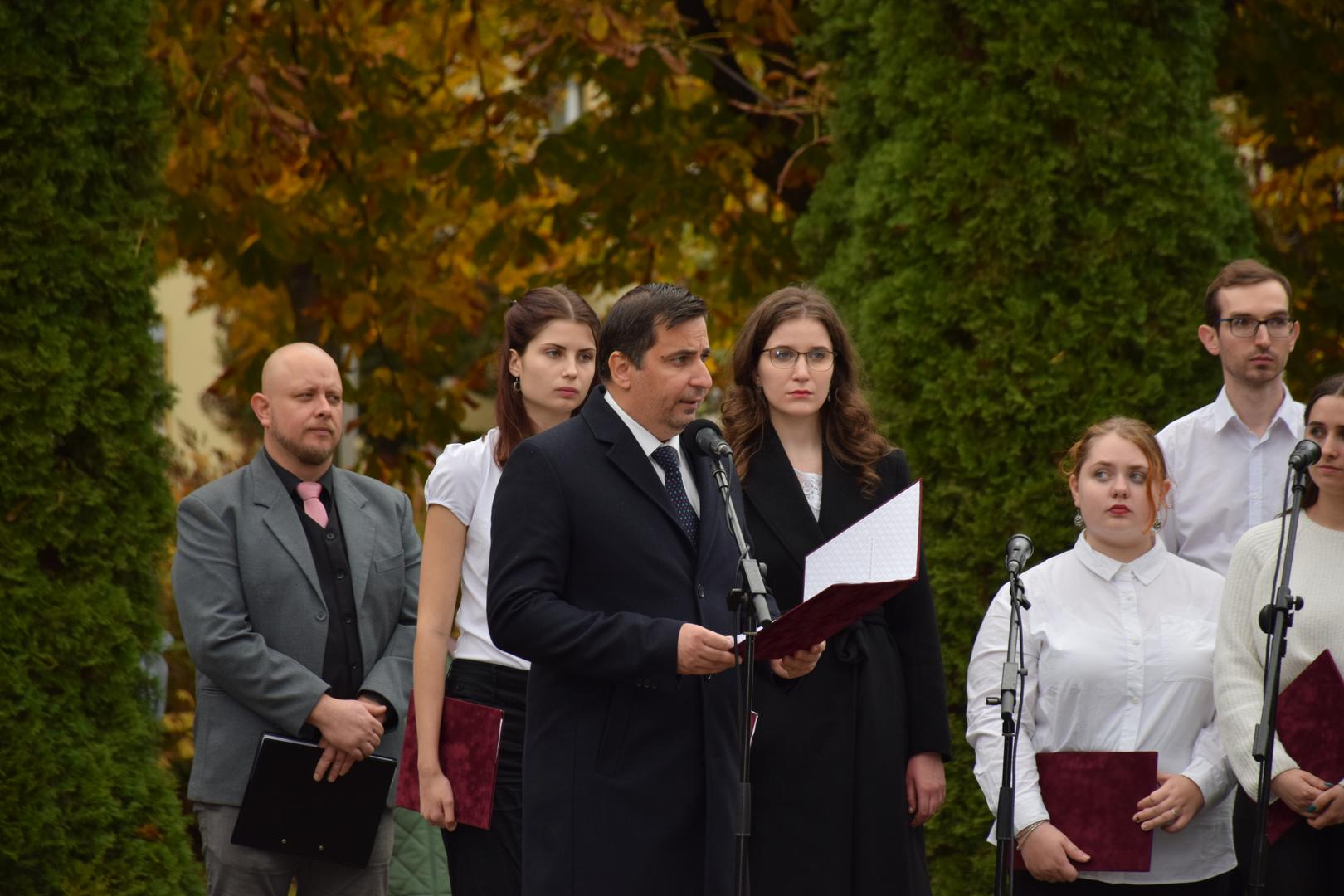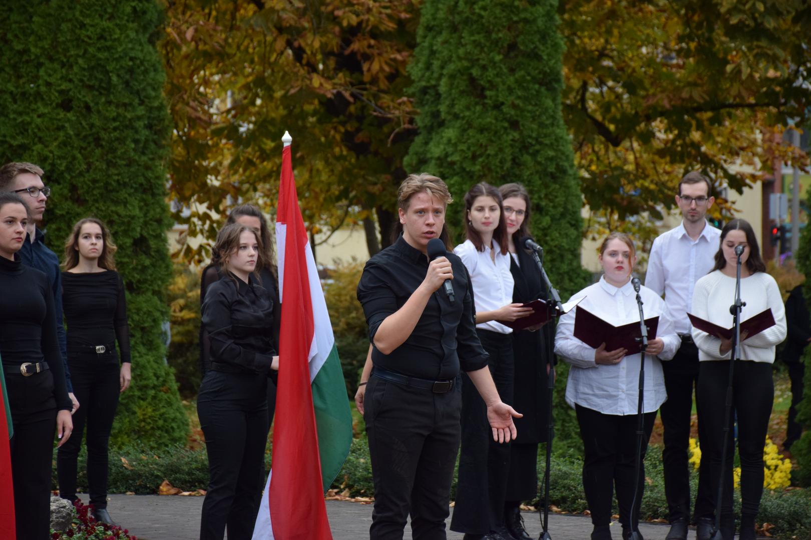 Hangsúlyozta, hogy az 1956-os forradalom és szabadságharc hőseit a haza és a közösség érdeke motiválta, és így példaképként kell, hogy álljanak előttünk. Nem vártak másra, nem keresték a dicsőséget, csak szolgálni akartak, akár az életük feláldozásával – tette hozzá a rektor.