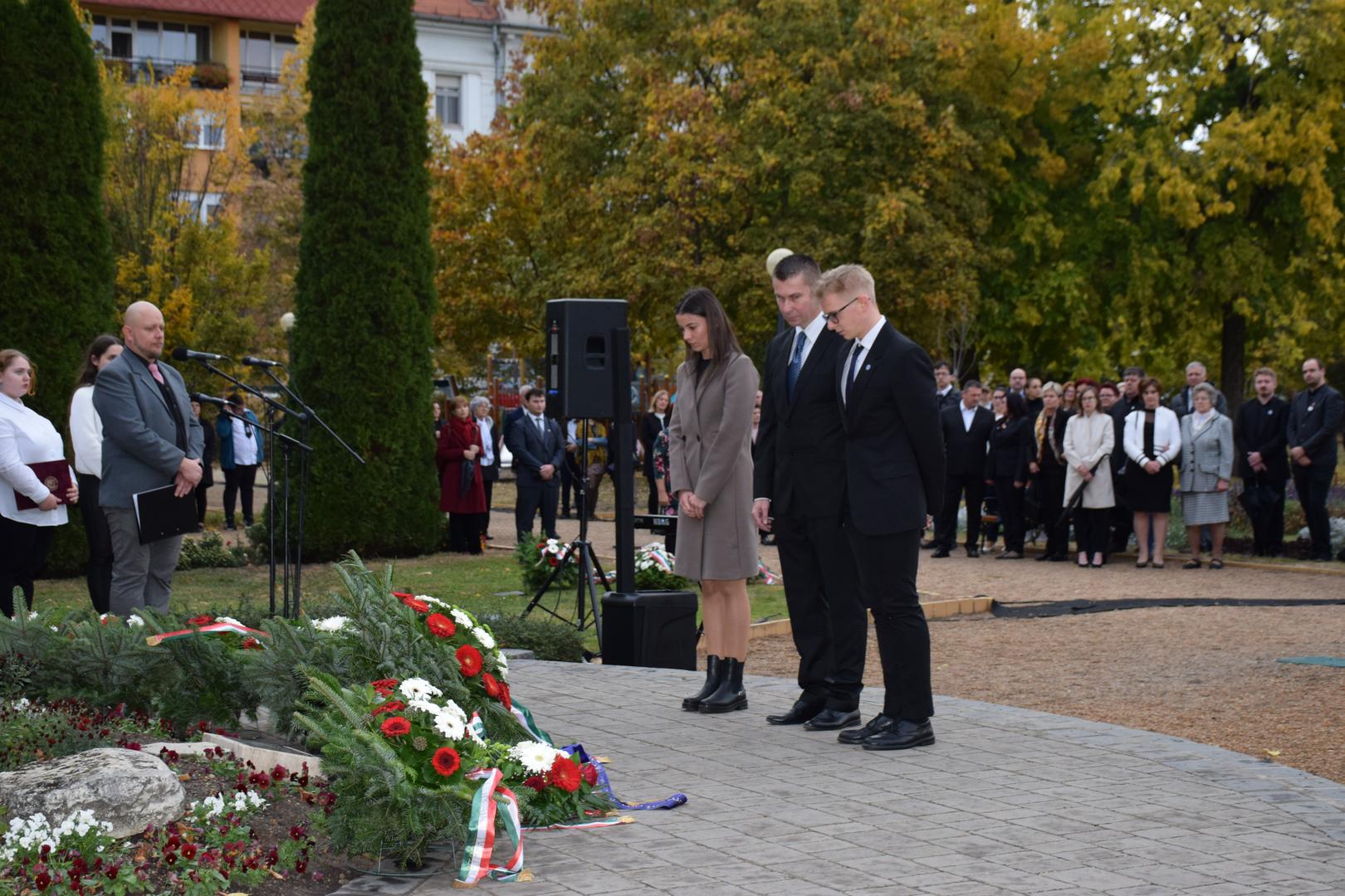 Az ünnepség zárásaként a bajai városi intézmények – köztük az NKE Víztudományi Kara – és civil szervezetek képviselői koszorúzással és főhajtás tisztelegtek az 1956-os forradalom emlékművénél.