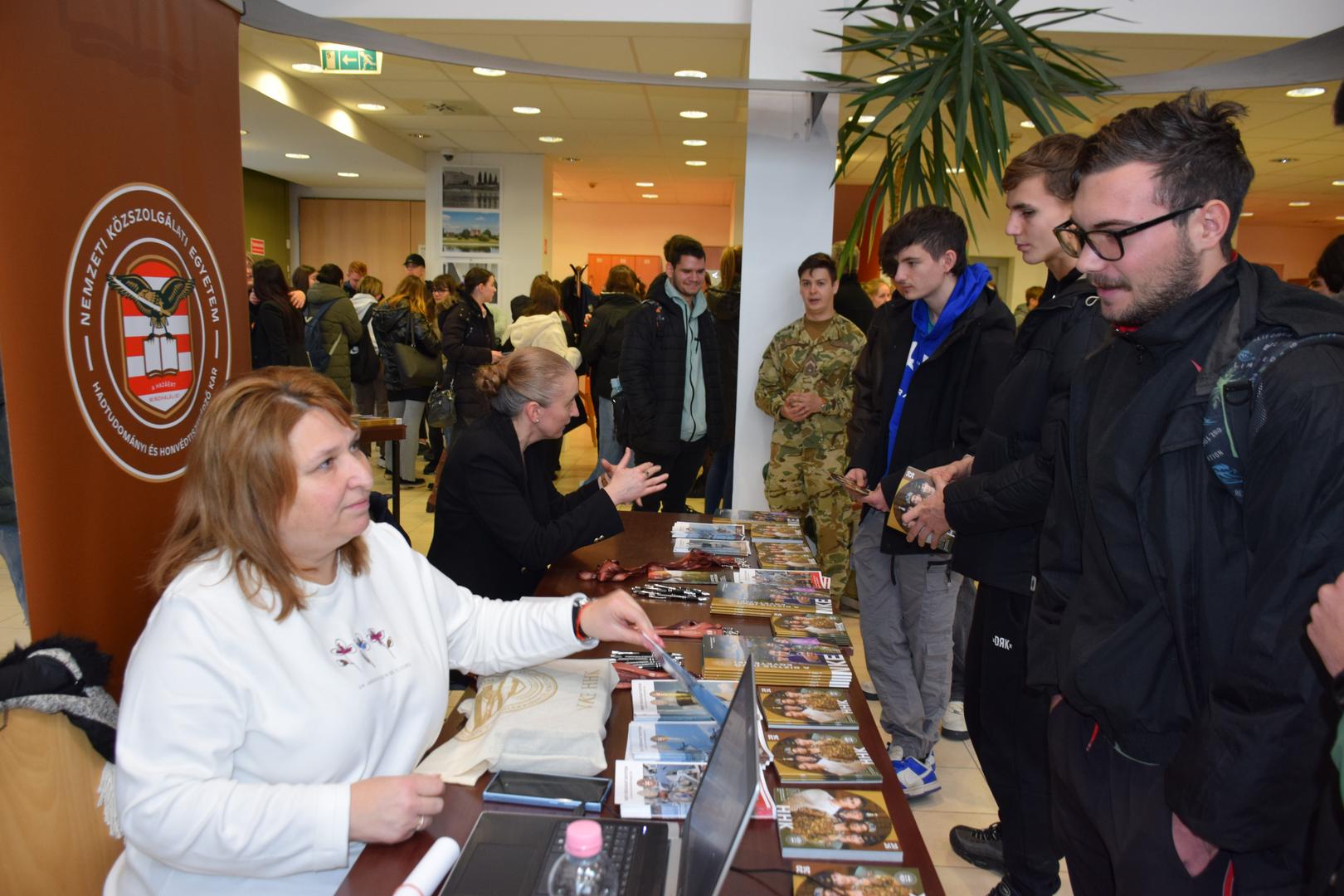 A Hadtudományi és Honvédtisztképző Kar képzési kínálatát Szente-Varga Mónika oktatási dékánhelyettes mutatta be, majd ismertette felvételi követelményeiket. Az NKE-n megszerezhetik a kellő tudást és képességeket, melyekkel helytállhatnak a munkaerőpiacon, illetve életre szóló kapcsolatokra tehetnek szert – fogalmazott az oktatási dékánhelyettes.
