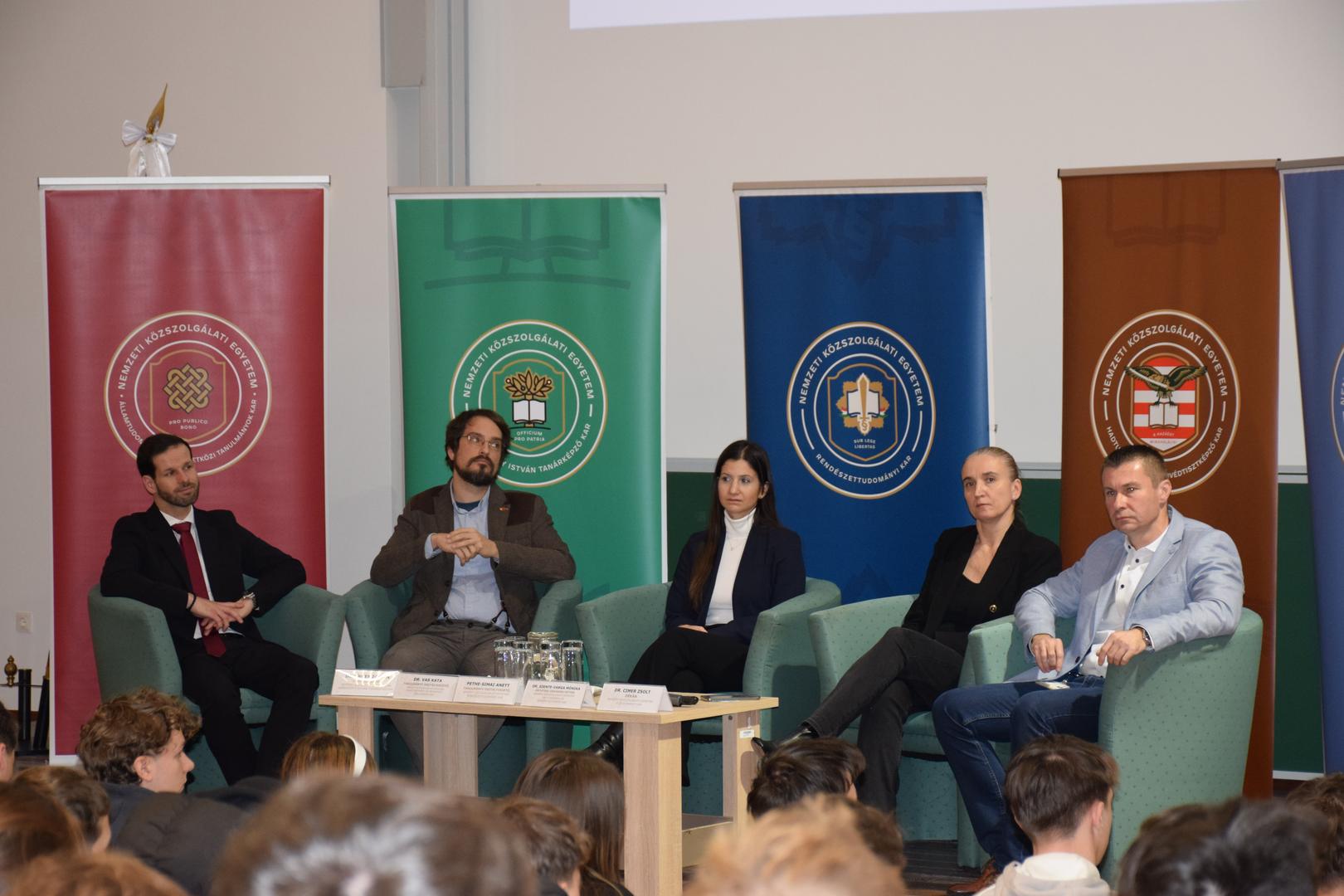 A kari bemutatók sorát Tischler Zoltán, Államtudományi és Nemzetközi Tanulmányok Kar Oktatásszervezési Osztályának osztályvezetője nyitotta meg. Elsősorban a hazai közigazgatási rendszer számára képeznek szakembereket – emelte ki az osztályvezető, valamint ismertette alap-, mester-, és osztatlan képzési portfóliójukat. A diákok figyelmébe ajánlotta a közigazgatási, a kiberbiztonsági és a nemzetközi közszolgálati kapcsolatok mesterképzési szakokat, melyekre a Víztudományi Kar alapképzési szakjain szerzett diploma után érdemes jelentkezni.