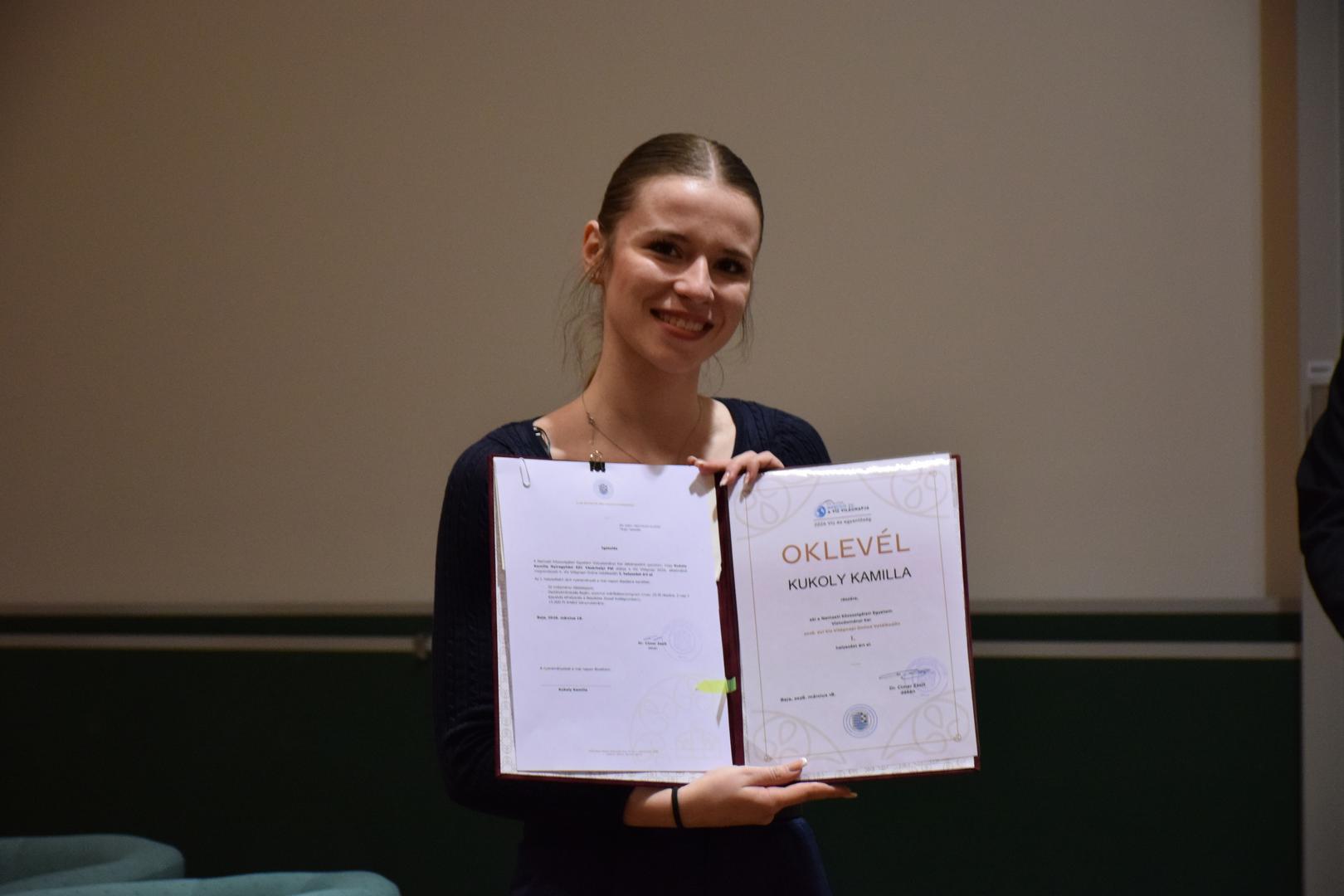 1. helyezett lett Kukoly Kamilla (a Nyíregyházi SZC Vásárhelyi Pál Technikum);