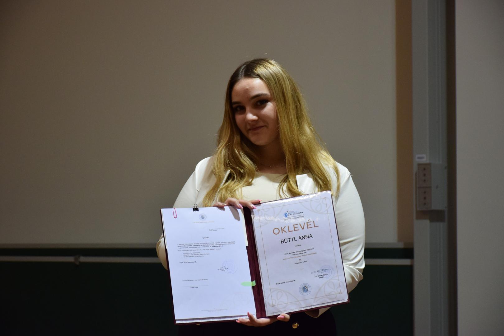 2. helyezett Büttl Anna (Energetikai Technikum és Kollégium);