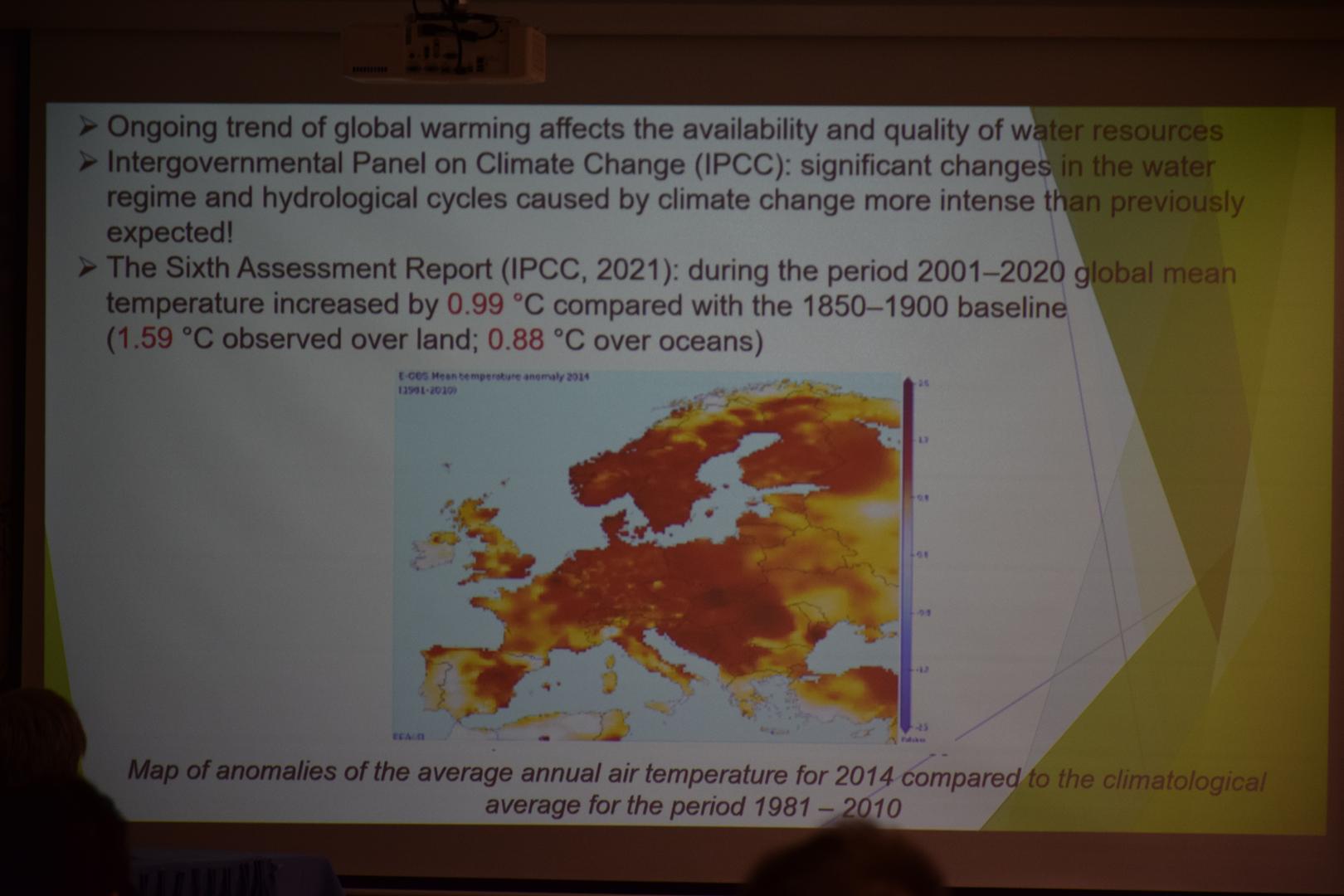A szakember bevezetőjében röviden ismertette Banja Luka város adottságait, majd a klímaváltozás és a vízkészletek közötti kritikus összefüggéseket mutatta be.