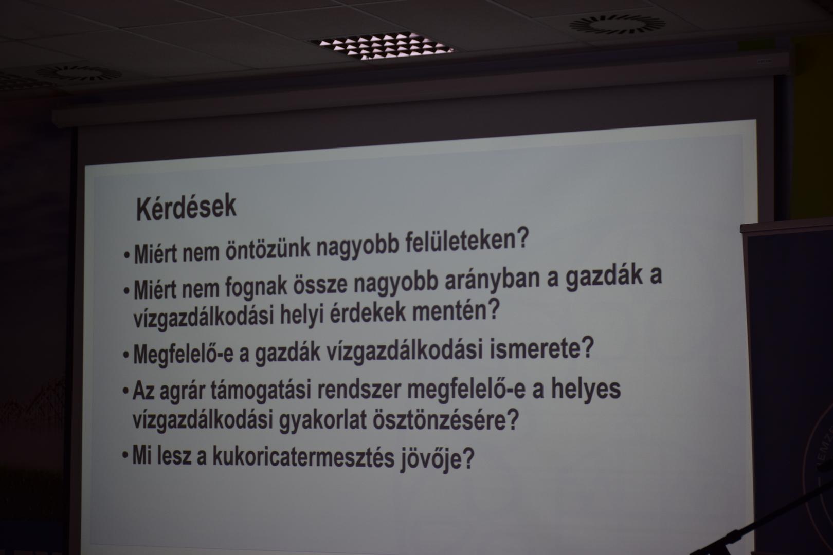 A szakkollégiumok bemutatkozása után vitafórum indult a hazai aszálykezelési lehetőségekről. A diskurzust Bíró Tibor és Bozán Csaba, a MATE Tudományos és Szaktanácsadási Intézet igazgató-helyettese moderálta. A kerekasztal résztvevői olyan kérdéseket jártak körül, mint az öntözés alacsony arányának okai, a gazdák együttműködésének hiánya a vízgazdálkodási érdekek mentén, a szükséges szakmai ismeretek megléte, valamint az agrártámogatási rendszer ösztönző szerepe. A továbbiakban többek között szó esett a vízvisszatartás lehetséges eszközeiről, így a duzzasztás kérdéséről, a Duna–Tisza csatorna megépítésének lehetőségéről, illetve arról, hogy hol és milyen módon lenne célszerű visszatartani a vizet a tájban.